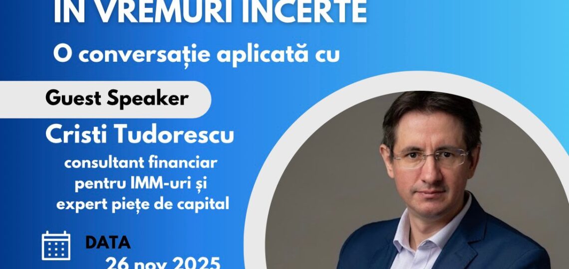 Invitatul special al întâlnirii este Cristi Tudorescu, consultant financiar pentru IMM-uri și expert în piețe de capital, cunoscut pentru experiența sa în consilierea companiilor privind strategiile financiare sustenabile și adaptarea la contextul economic actual.
